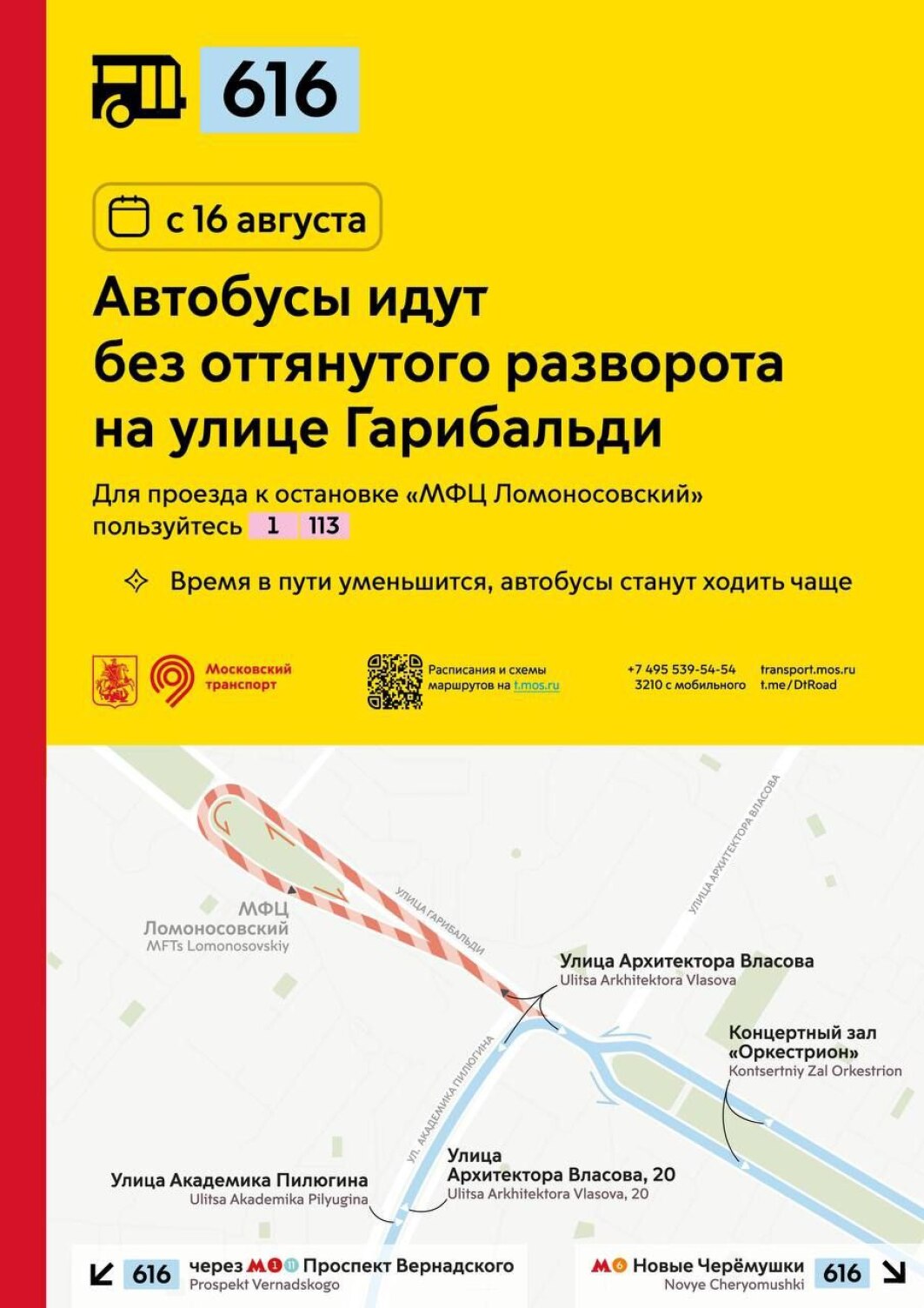 С 16 августа автобусы 616 пойдут без оттянутого разворота на улице Гарибальди