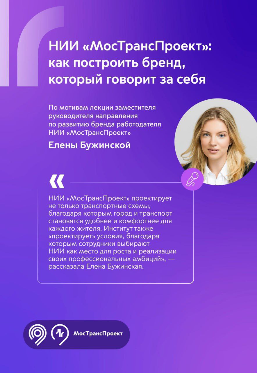 Его составила Елена Бужинская, заместитель руководителя по развитию бренда работодателя НИИ «МосТрансПроект».
