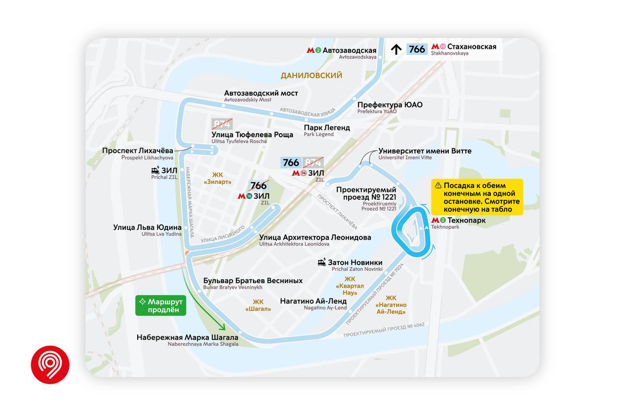 🔹Маршрут 874 объединится с маршрутом 766. Автобусы будут ходить чаще, а поездка станет комфортнее.