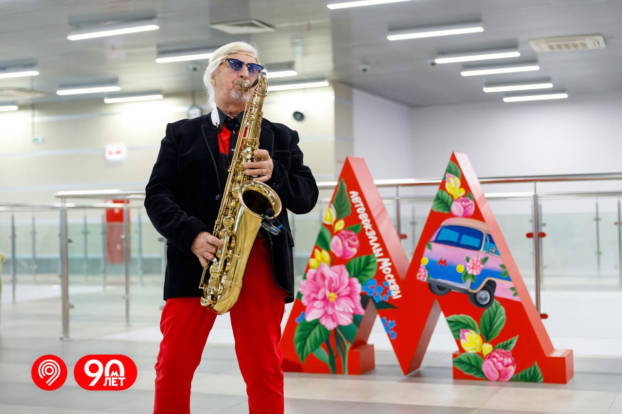Поддержать художников пришел джазмен и участник проекта «Музыка в метро» Джордж Гранд. Он исполнил несколько композиций на саксофоне.