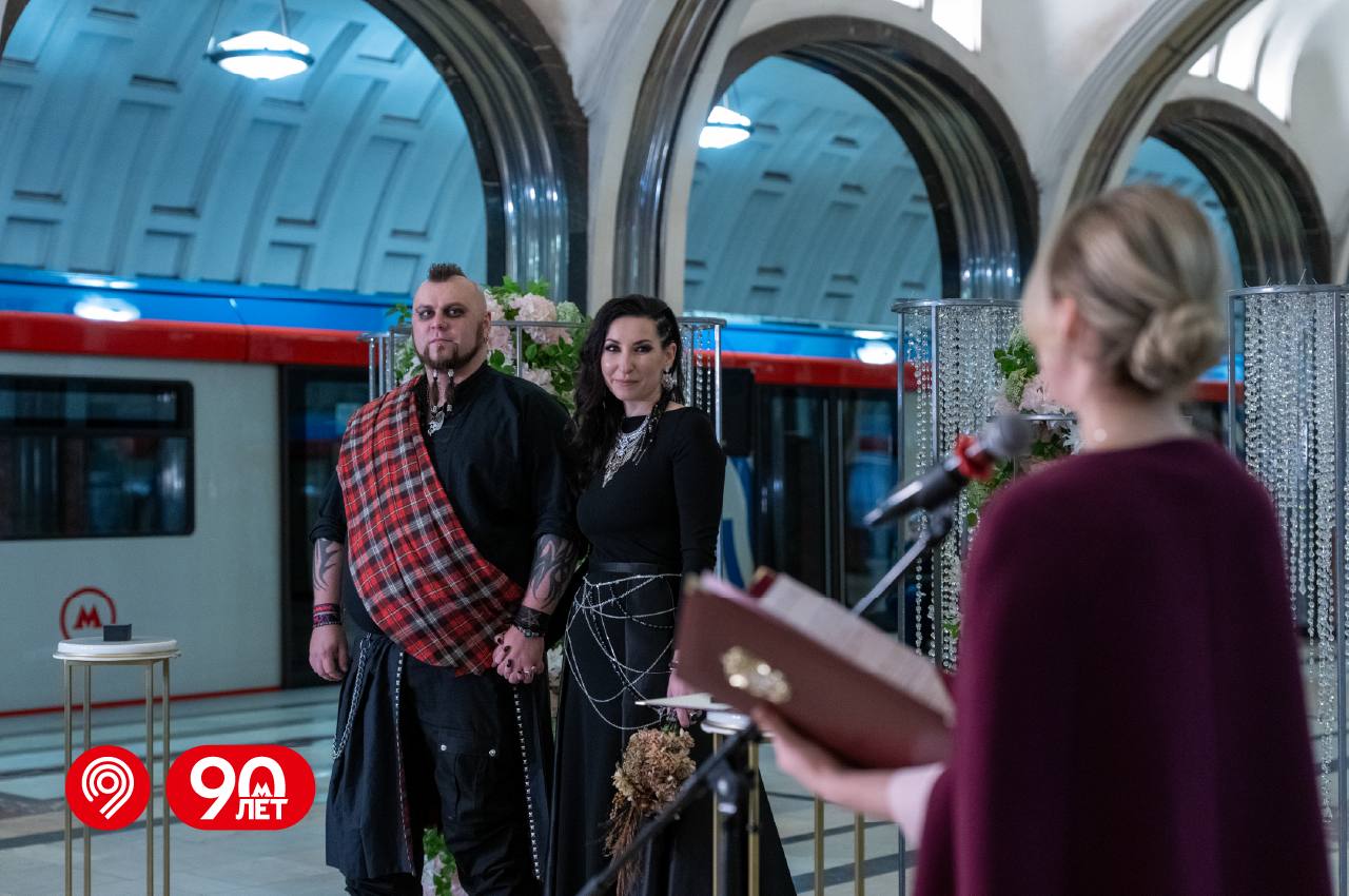 Московский метрополитен продолжает объединять сердца. В ночь с 1 на 2 ноября сотрудники столичных ЗАГСов провели 3 церемонии бракосочетания под сводами исторической станции.