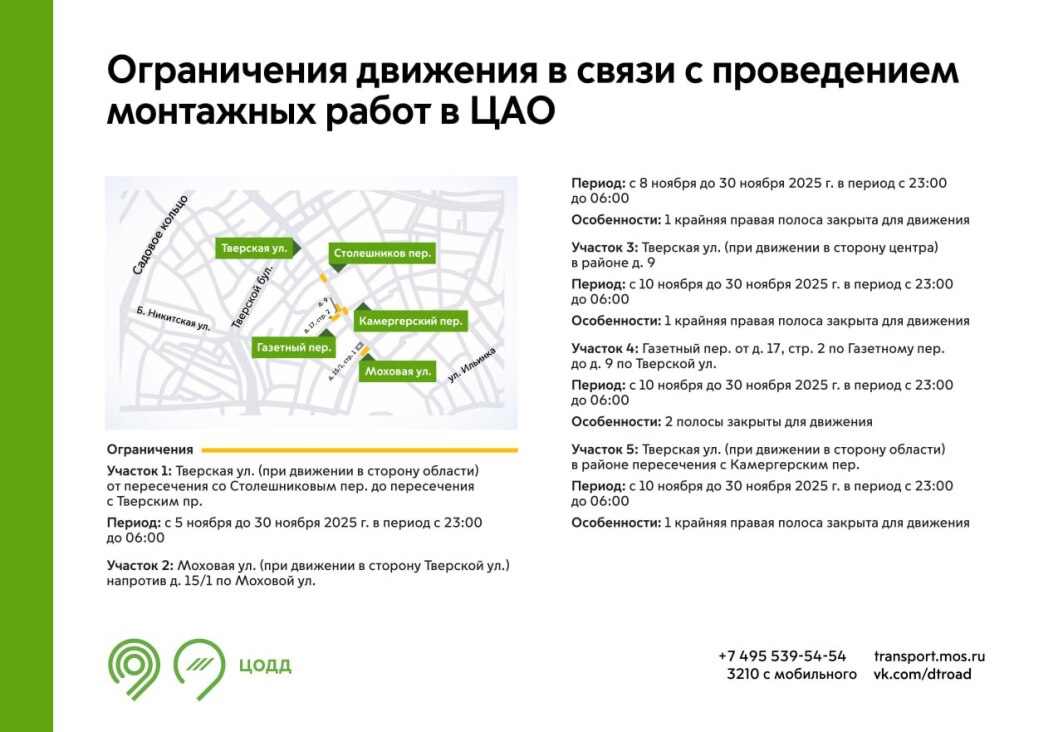 Ограничения движения в связи с проведением монтажных работ в ЦАО