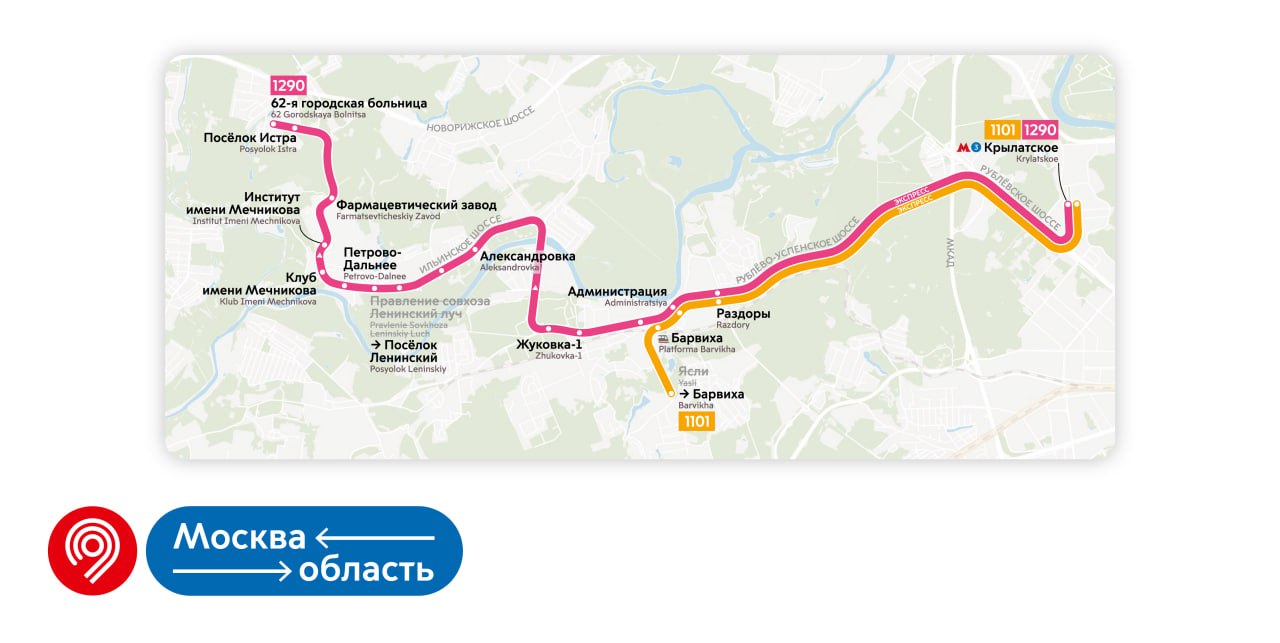 Максим Ликсутов сообщил, что с 8 ноября от станции метро «Крылатское» начнут курсировать 2 новых маршрута: 1101 до Барвихи и 1290 до 62-й Московской городской больницы. Автобусы проследуют по Рублево-Успенскому шоссе. На линию выйдут 7 современных машин большого класса, которые оборудованы по высоким московским стандартам.