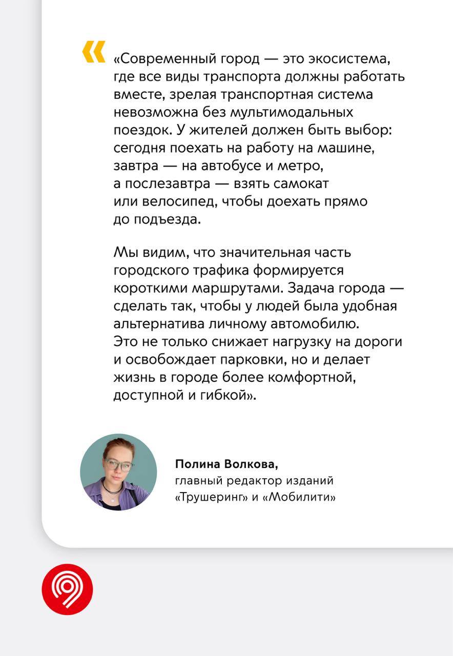 «Развитие новой мобильности — это главный транспортный тренд последних лет. Москвичи все чаще комбинируют городской транспорт с поездками на электросамокатах, каршеринге и велосипедах. Это помогает экономить время и добираться до любой точки города быстрее. Мы продолжаем обеспечивать комфорт и безопасность для всех участников движения, как поручил Мэр Москвы Сергей Собянин», — сообщил Максим Ликсутов.