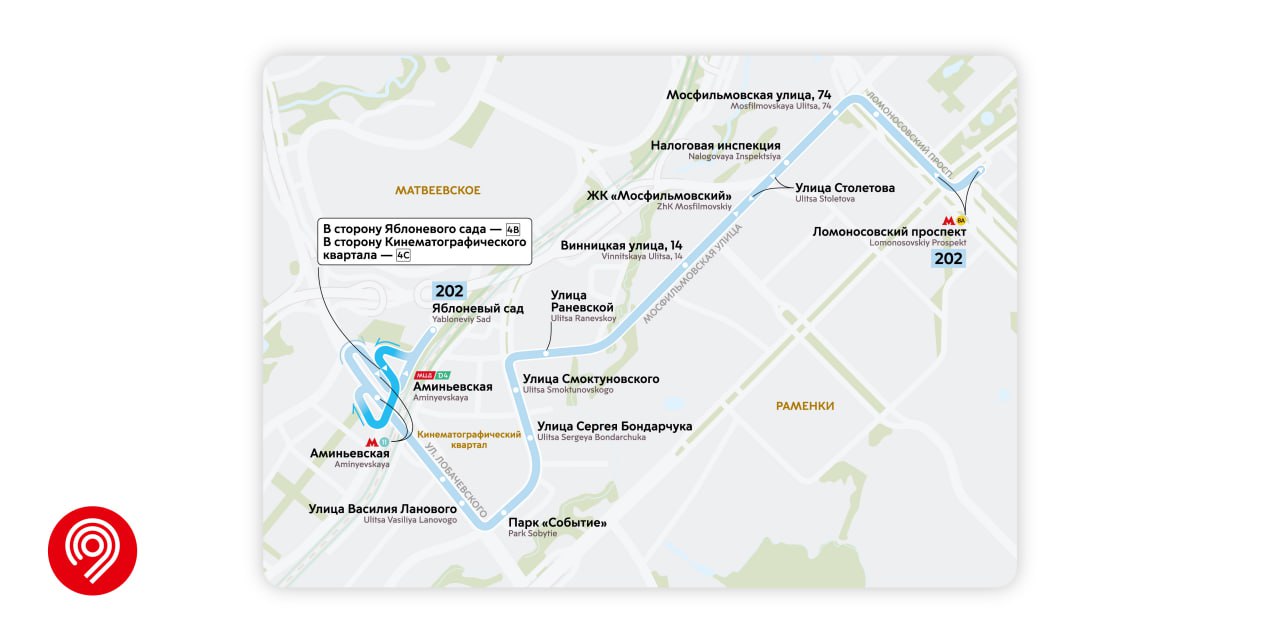 Максим Ликсутов сообщил, что 22 ноября заработает еще 1 маршрут наземного транспорта 202. Он свяжет жилые комплексы в Кинематографическом квартале в районе Раменки со станциями метро «Аминьевская» БКЛ и «Ломоносовский проспект» Солнцевской линии.