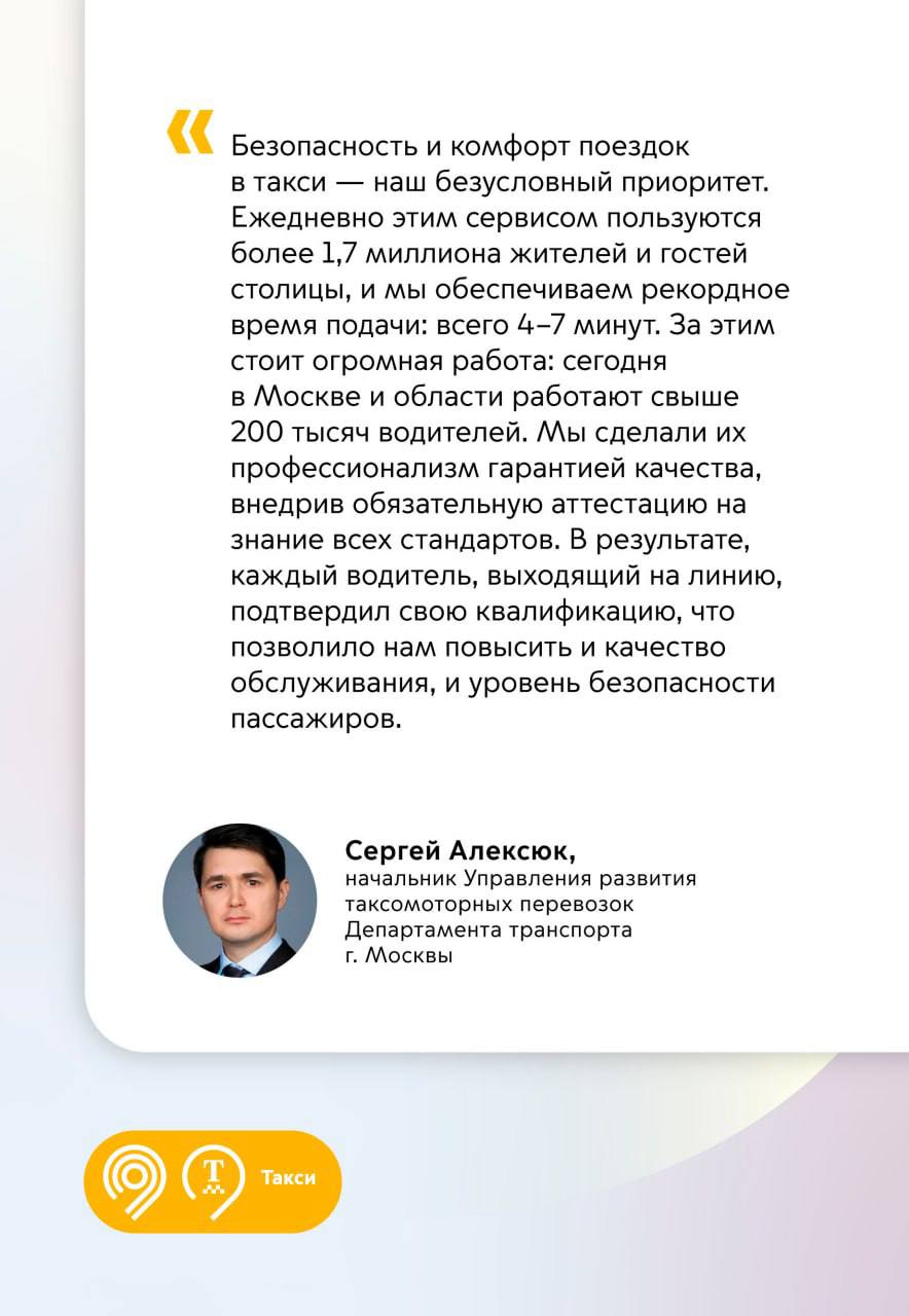 🔹 В Москве работают свыше 200 тыс. водителей такси, которые ежедневно перевозят более 1,7 млн пассажиров.