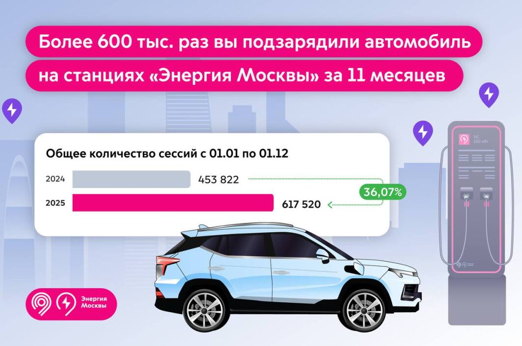 Максим Ликсутов сообщил, что за 11 месяцев 2025 года на станциях проекта владельцы электромобилей совершили более 600 тыс. зарядных сессий. Это на 36% больше, чем за такой же период прошлого года.