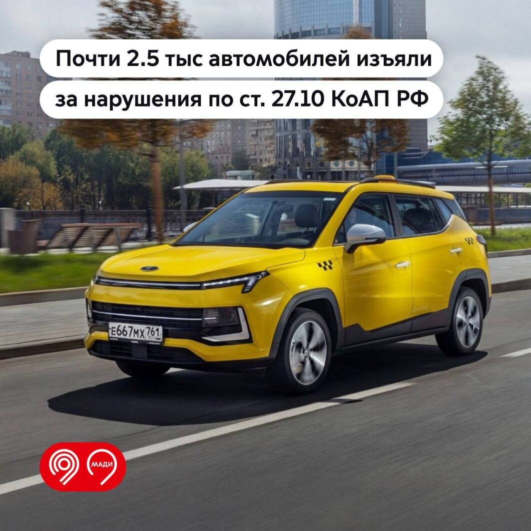 С начала 2025 года сотрудники инспекции осмотрели около 33 тыс. машин такси. У недобросовестных перевозчиков изъяли почти 2,5 тыс. автомобилей на основании статьи 27.10 КоАП РФ.