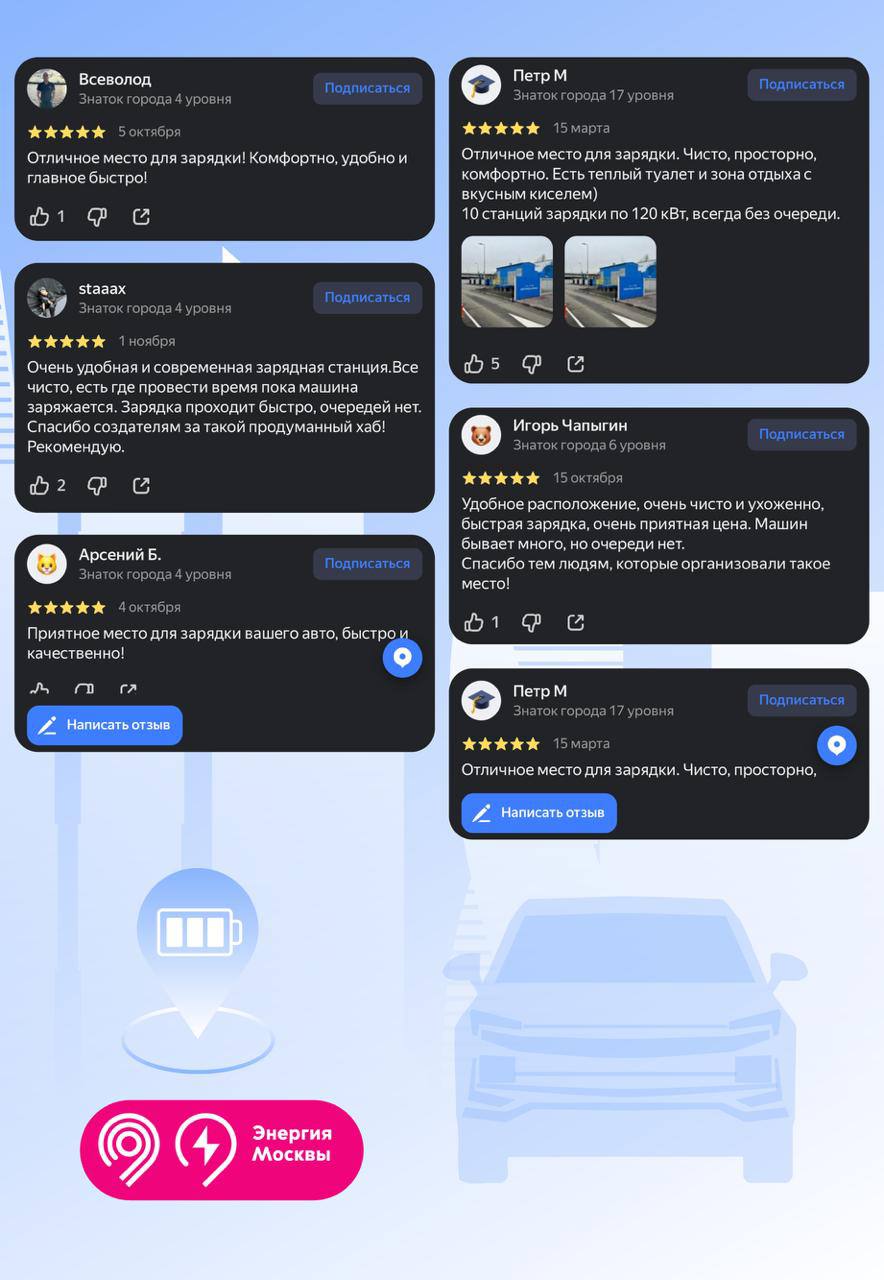 «Мы развиваем сеть зарядных комплексов для электромобилей в столице по поручению Мэра Москвы Сергея Собянина. В феврале 2025 года открыли 1-й электрозарядный хаб «Южный». За все время работы пользователи совершили здесь более 10 тыс. сессий. Мы продолжим расширять необходимую инфраструктуру для владельцев электротранспорта», — отметил Максим Ликсутов.