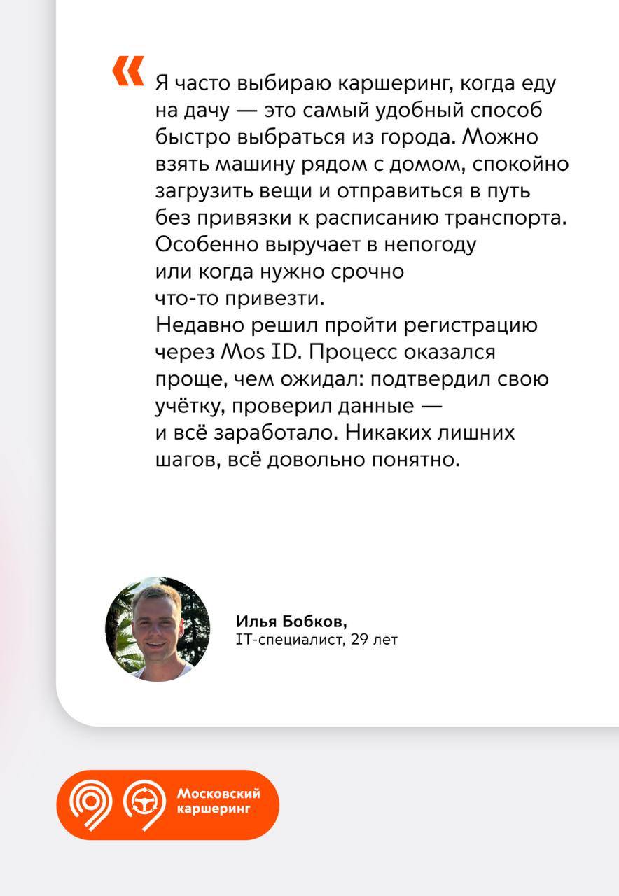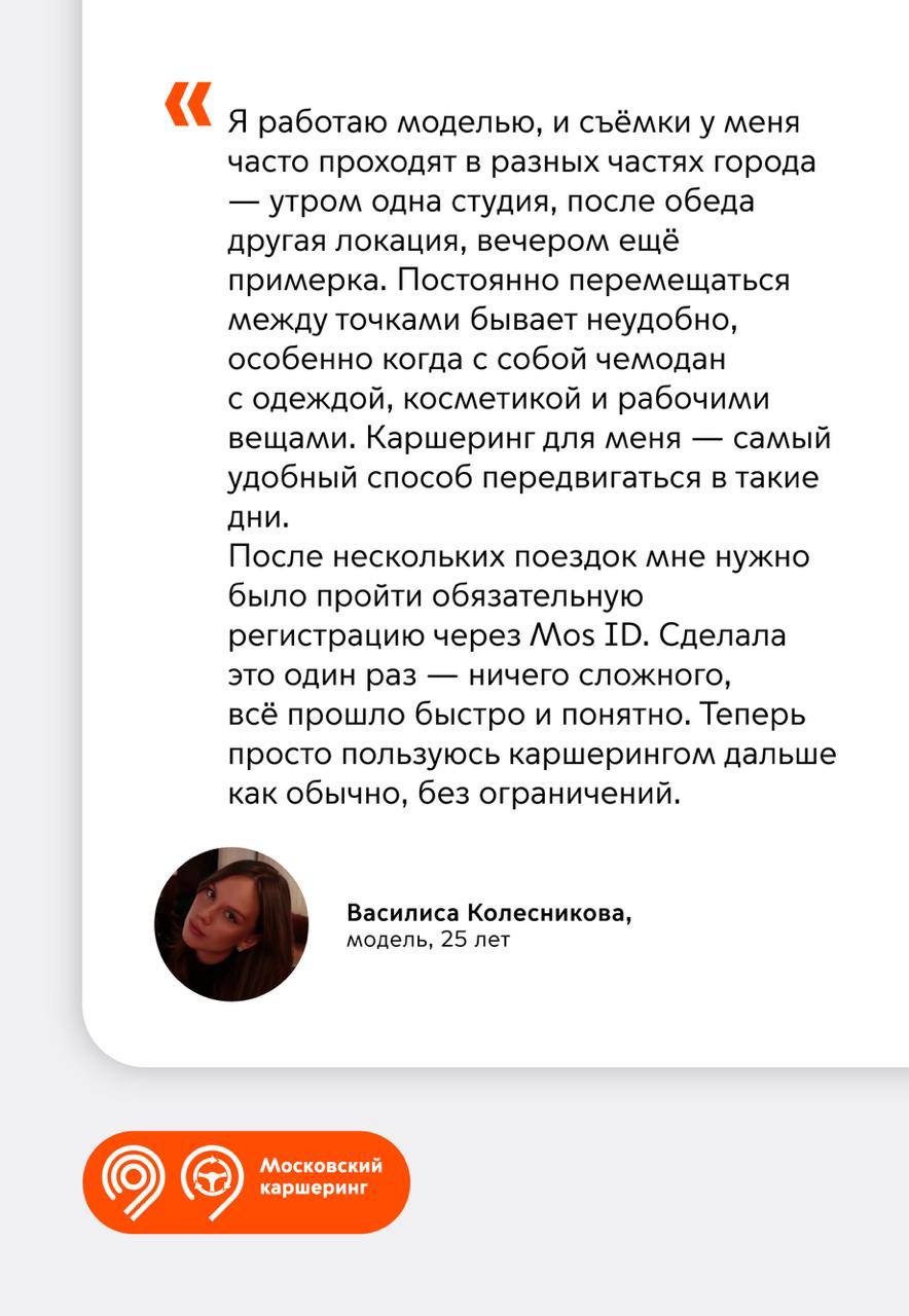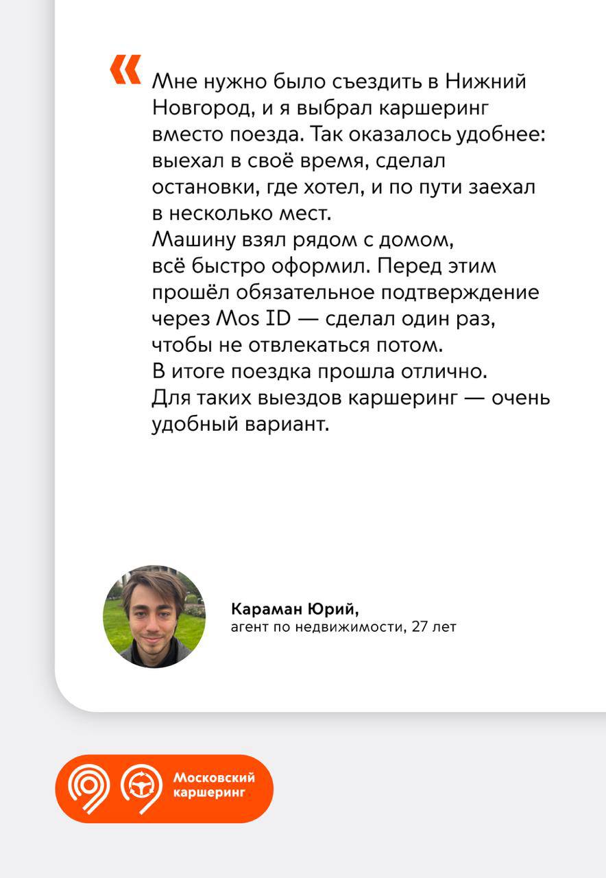 «Каршеринг — удобный сервис, который позволяет совершать поездки быстро и с комфортом. Чтобы платформа стала еще безопаснее, с 1 сентября ввели единую верификацию через mos.ru для всех пользователей. Благодаря этому сервис справедливо решает спорные ситуации и поддерживает актуальные данные водителей при смене документов», — отметил Максим Ликсутов.