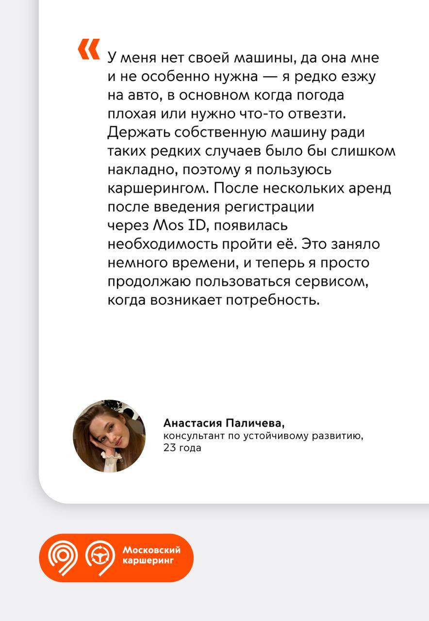 В карточках собрали мнения водителей о поминутной аренде машин и их опыте верификации через Mos ID.
