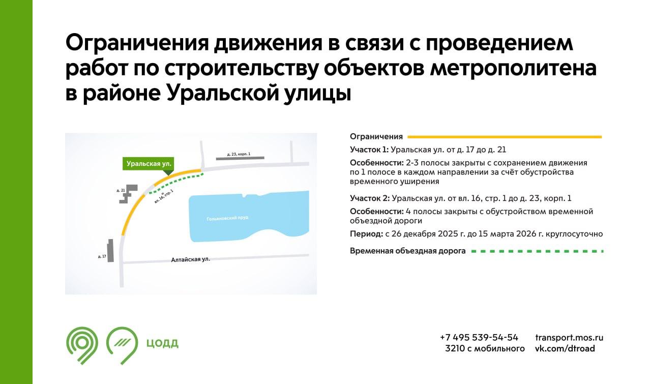 С 26 декабря 2025 г. до 15 марта 2026 г. на участках Уральской улицы будут недоступны для движения 2-4 полосы