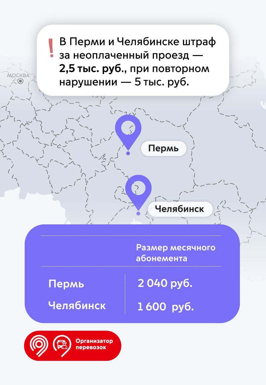 Какие штрафы за безбилетный проезд действуют в разных городах России? Рассказываем в карточках