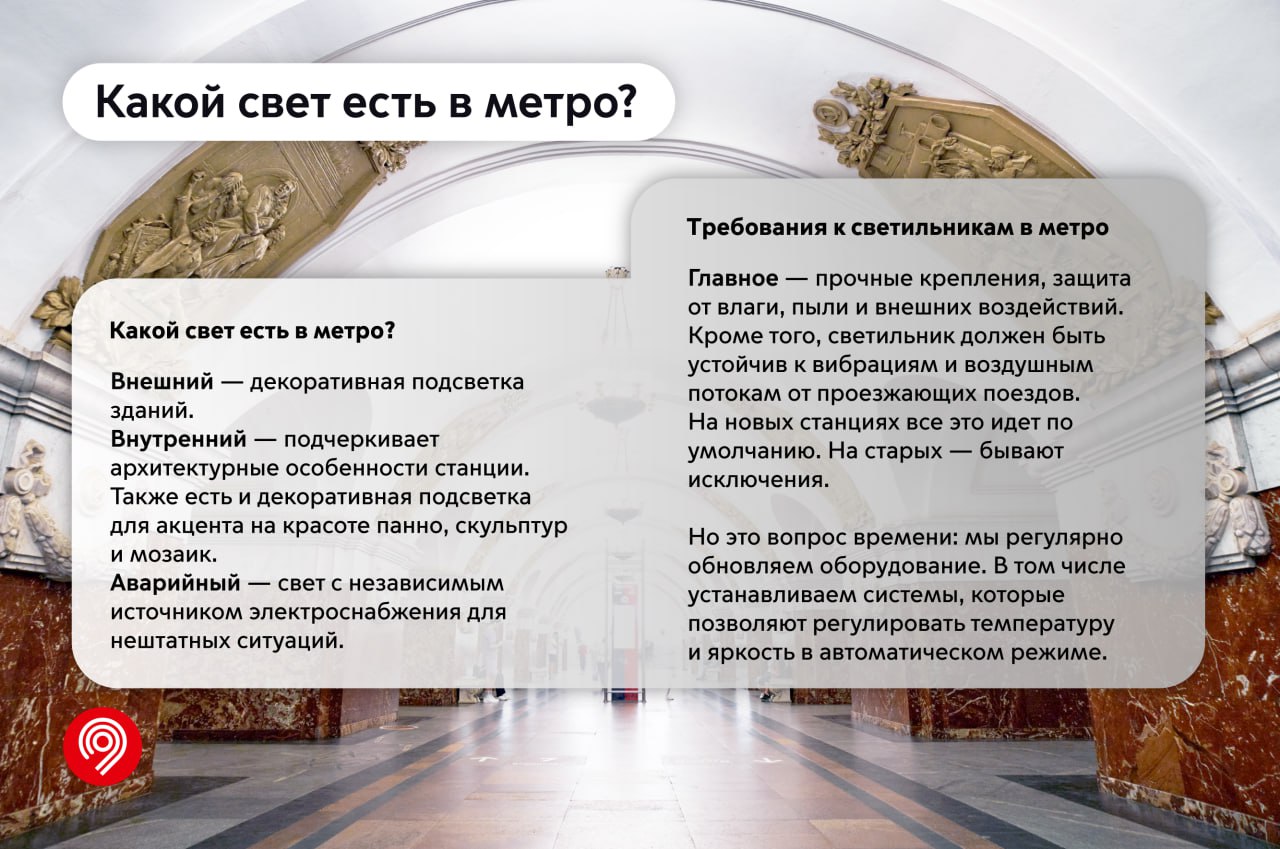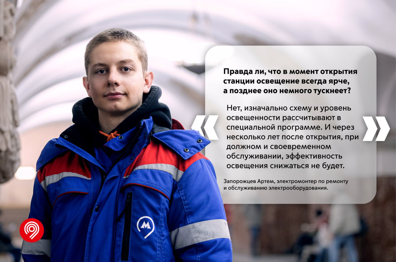 В карточках вместе с сотрудником Службы электроснабжения отвечаем на популярные вопросы о свете в метро.