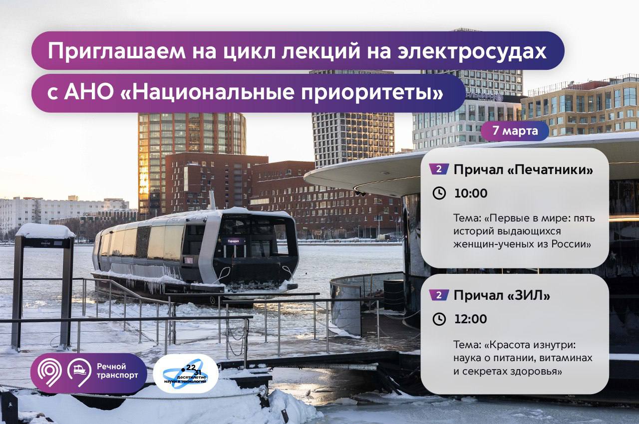 7 марта на 2-м регулярном речном маршруте пассажиры узнают о прорывных научных достижениях женщин и выяснят, как внешние факторы влияют на наше здоровье и что такое «красота изнутри».
